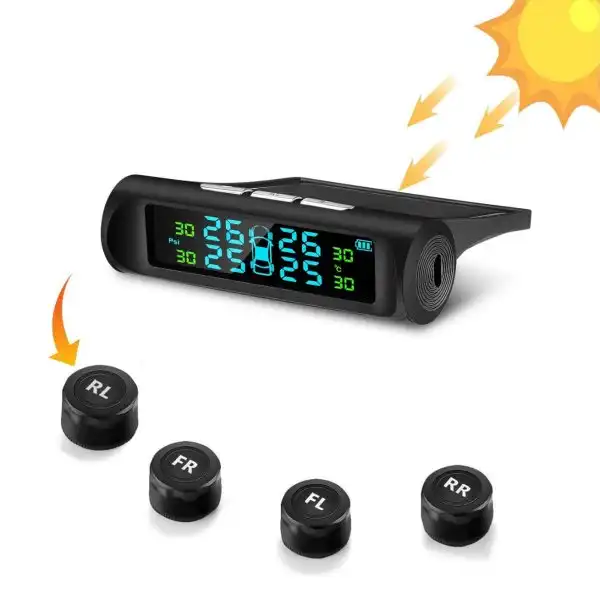 Система контролю тиску в шинах забезпечує безперервний моніторинг та показує тиск у всіх колесах під час руху. Вона підходить для будь-якого автомобіля та має простий спосіб встановлення датчиків замість ковпачків ніпелів.
